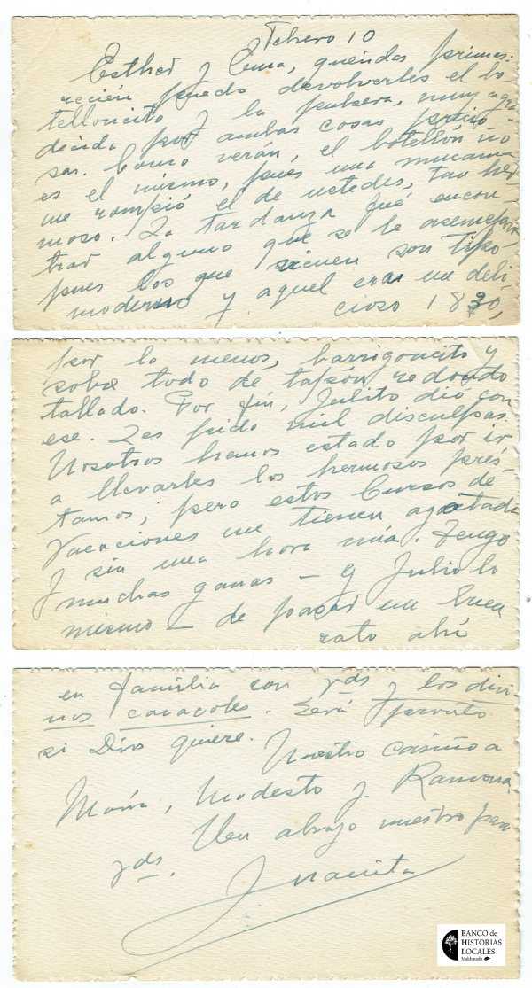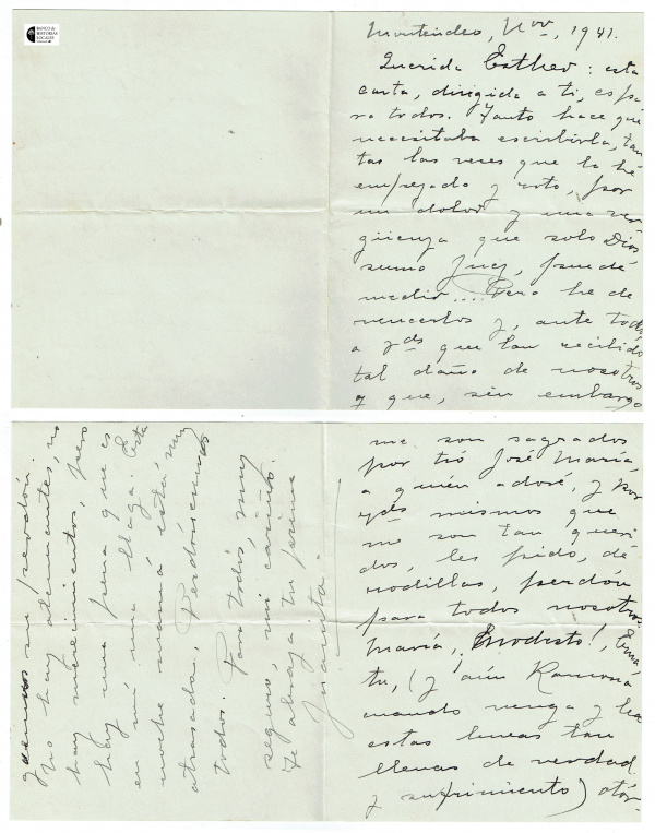 Correspondencia familiar de la escritora con Ramona Álvarez de De Murga, su hermana y sobrinos. Aporte de Gonzalo De Murga, 2025. Originales donados a la Biblioteca del BHL.