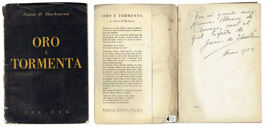 Primera edición (Zig Zag, Chile, 1956) dedicada de "Oro y tormenta", donación de Gonzalo De Murga a la Biblioteca del BHL, junio 2025.